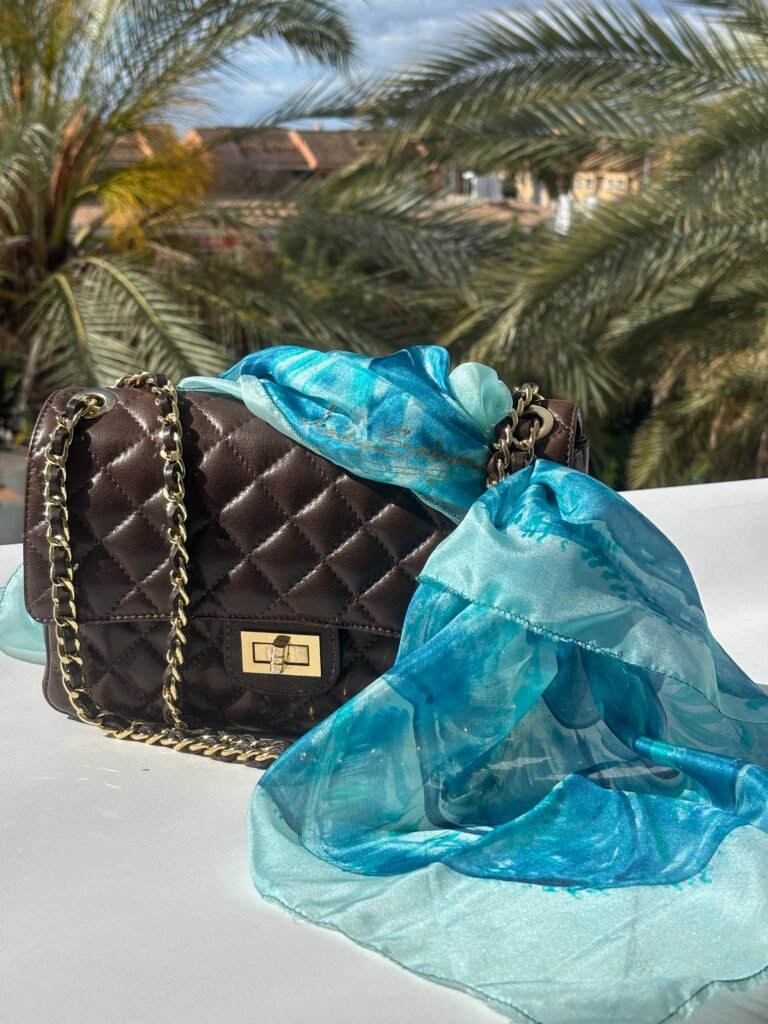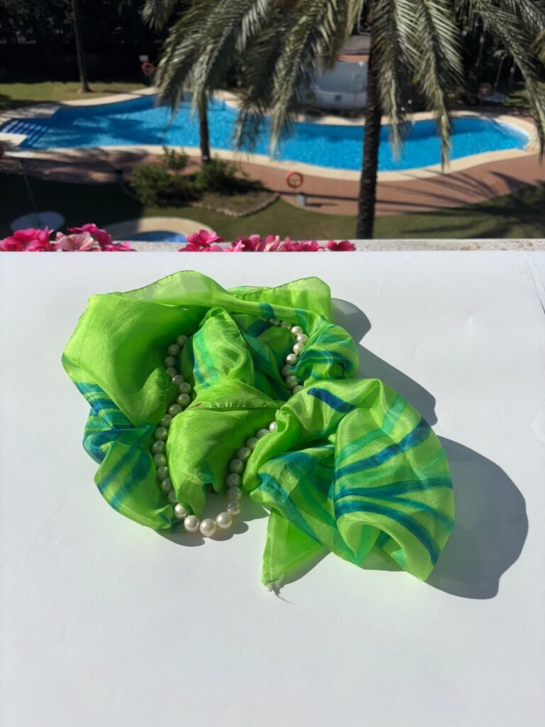 Cada foulard de seda es una pequeña joya artística: pintado a mano con mimo, lleno de matices únicos e irrepetibles. No es un complemento, es una obra de arte que se mueve contigo.